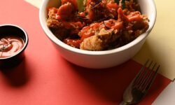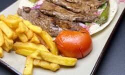 شرائح لحم بقري وشرائح دجاج تقدم علي الخضروات (320سعر حرارى)"