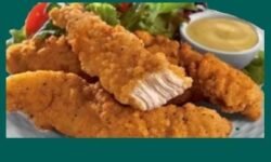 تندر دجاج مقلي تقدم مع بطاطا مقلية وسلطة منزلية (618 سعر حرارى)