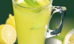 A healthy drink made from orange juice, lemon, and mint.
